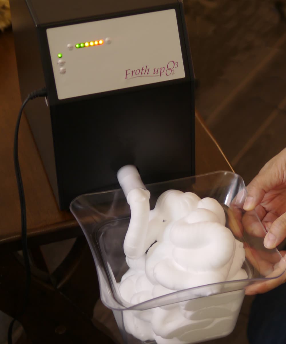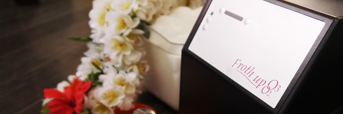分解しやすいオゾンを、微小の泡に閉じ込めることによって、1時間以上分解せずにお肌への効果を発揮します。
